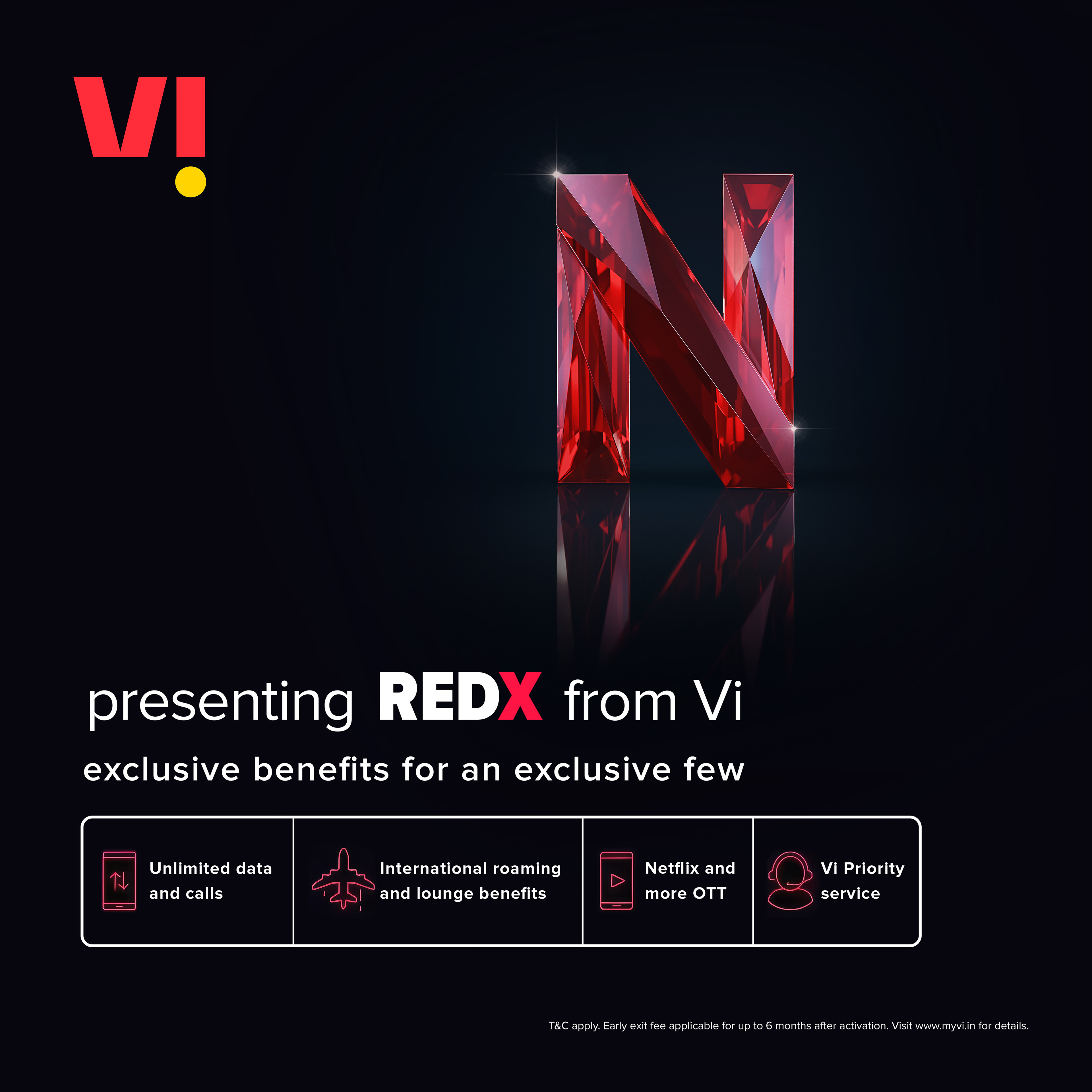 Brief: To launch Vi's premium post-paid plan, RED X, we needed to visualize intangible benefits—Priority Service, Travel, and Entertainment—as tangible, high-value objects.