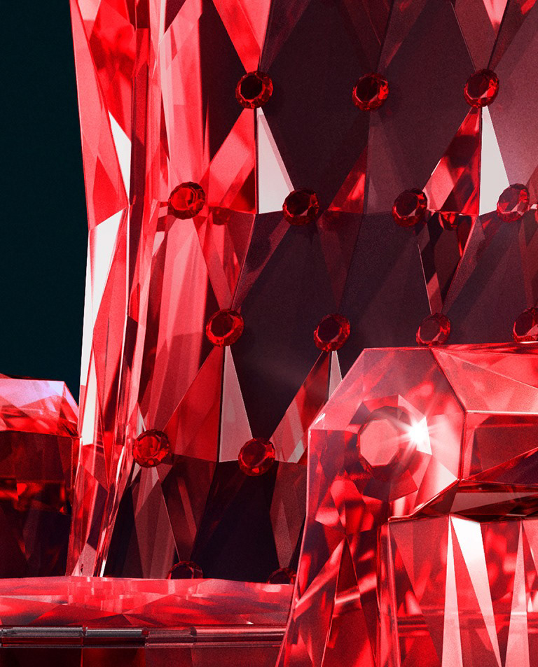 Concept: "Exclusive benefits for an exclusive few." We developed a visual language based on faceted ruby gemstones. The goal was to transform everyday icons into precious, high-end artifacts that reflect the status of the RED X customer.